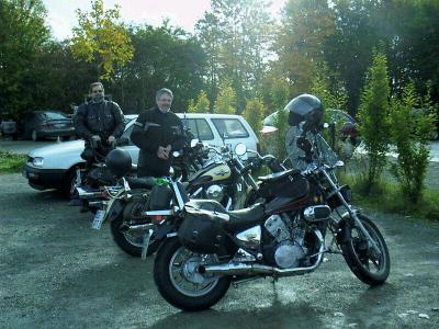 Naja, fast alle ;-). Hier sehen wir Drifterman aus Schwenningen, Charly aus Achern und ein helmtragendes Hoizkessele... (am Treffpunkt P+R, BAB-Anschluss Rottweil)