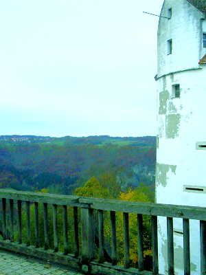 Gleichsam auf gleicher Augenhöhe mit einem Beobachter auf der anderen Höhe jenseits des Donautals, bietet die Burg weite Blicke, alles sieht man, nur eben das Donautal nicht. |