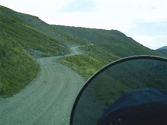 Glücklicherweise war die "Strasse" trocken. Wenn es regnet dürfte sie sich in ein einziges Schlammbad verwandeln. Teilweise sind die Kehren tief ausgefahren und es haben sich viel-cm-hohe Staubhäufen gebildet. Besonders um den Mt.Genervis herum waren die übelsten Vertreter solcher Kehren. |