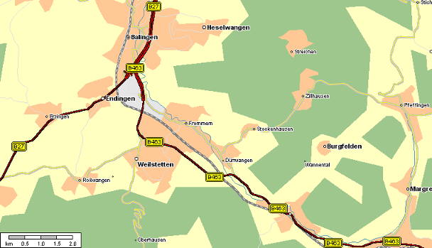 Weilstetten liegt zwischen Balingen und Albstadt-Laufen an der B463 (Verbindungsstrasse zwischen Balingen im Westen und Sigmaringen im Osten) und hat eine gemeinsame Ausfahrt mit Frommern. |