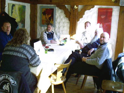Hanspeter (guggt diesmal ziemlich aufgeweckt), Silvia (mit i!), Charly, Uwe, Hermann (der alte Weise vom Berge), Dietmar. |