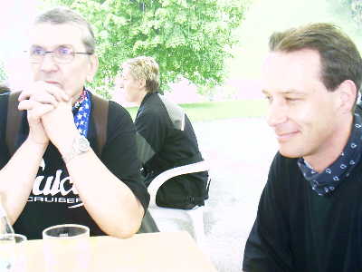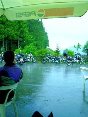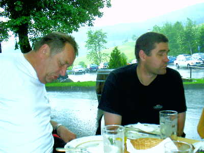So sinnieren Hanspeter und Michael bereits verdauend über die Wetterwidrigkeiten des Moppedfahrens als solchem... |