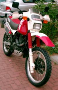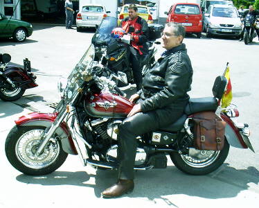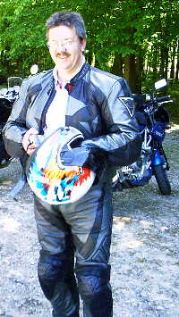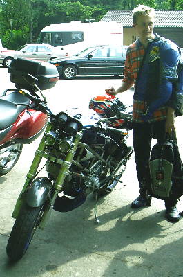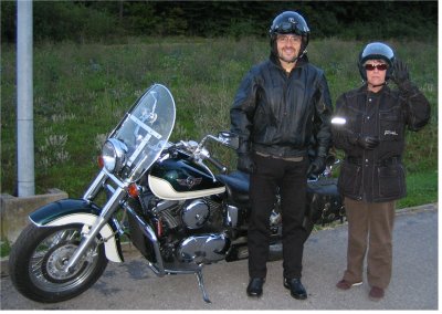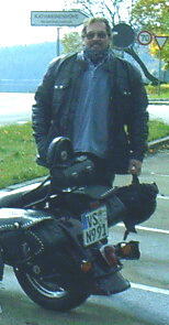 Uwe aus Altensteig unser Ex-Sportler auf der TRX, die er hier mit breitem Kreuz verdeckt, war seit Kroatien auf "Offroader"suche (ausserdem war es mal wieder Zeit für ein neues Mopped) BMW F650 "adventure")