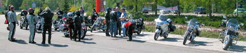 Pünktlich und betankt eintreffen:Versteht sich eigentlich von selbst, dass man die anderen Mitfahrer nicht unnötig warten lässt. Wer trotzdem gleich nach Abfahrt nachtanken muss, gibt einen aus! (Ausnahmen hierzu gibt es bloss, wenn man einen undichten Tank hat, wie weiland Micha, dafür muss man aber einen Ersatzkanister mitführen.) :o) Vor Abfahrt sollte ausserdem jeder dem Wegführer mitteilen, wie lange er durchschnittlich mit seinem Tank durchhält, der erste Tankstopp richtet sich logischerweise nach der geringsten Reichweite. Auch Raucher outen sich rechtzeitig, bevor sie vom Mopped fallen, der Wegführer hat, selbst wenn er selbst nicht raucht, ausreichend Verständnis für die Süchte seiner Mitmenschen, um Pausen einzubauen. ;o)