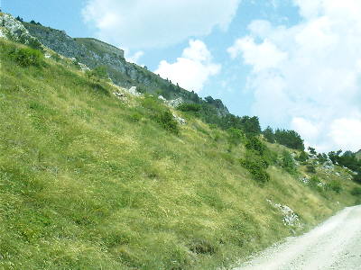 | Zwei Radwanderern, die an einer Biegung den Ausblick geniessen, rufe ich ein freundliches "Bon Jour!" zu, ernte aber eher unfreundliche Blicke, weil ich wohl die Stille der Bergeinsamkeit zu unsanft störe, die Fahrer entgegen kommender Allradfahrzeuge erwidern zumindest mein Kopfnicken oder meine Dankhand, wenn sie sich bei der Passage dünn machen. | |
