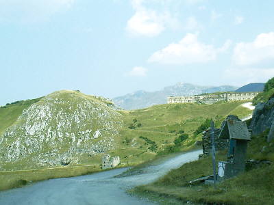 | Das Fort dräut über allem und ich vergewissere mich anhand der Wegweiser, dass mich der Weg zum Boaire führt, versichere mir noch einmal, dass ich umkehren werde, sobald es für Hoizkessele zu heftig werden wird - und schon bin ich unaufhaltsam unterwegs auf den Schotterwegen, die die Freiheit bedeuten. |