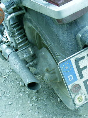So kann man sich verschätzen, was zunächst nur als letzte Slicknutzung geplant war, erweist sich schliesslich als Reifen-Härtetest. Ich nicke ihm freundlich zu und sage: "I know!" und starte in einer schnellen Staubwolke. Jetzt erst merke ich, dass meine natürliche Scheu vor Ordnungshütern mich vor schlimmerem bewahrt hat, wenn man sie anspricht, um nach dem Weg zu fragen, steht das Hinterrad ja naturgemäss still. |